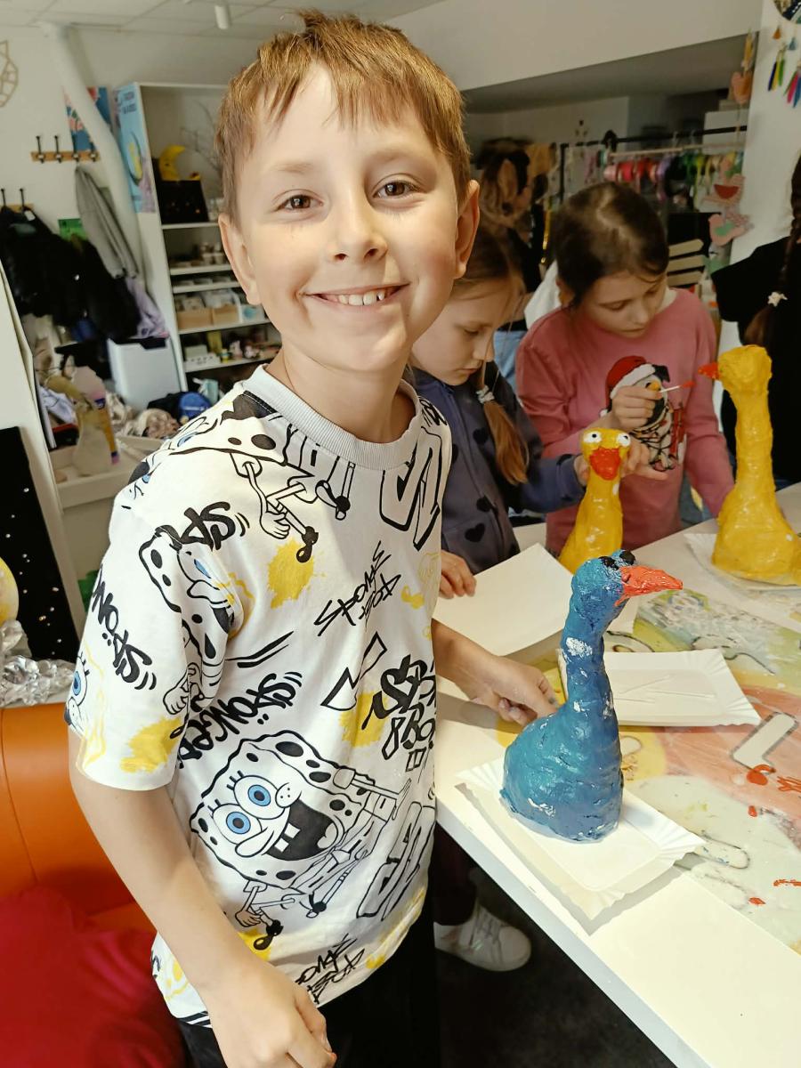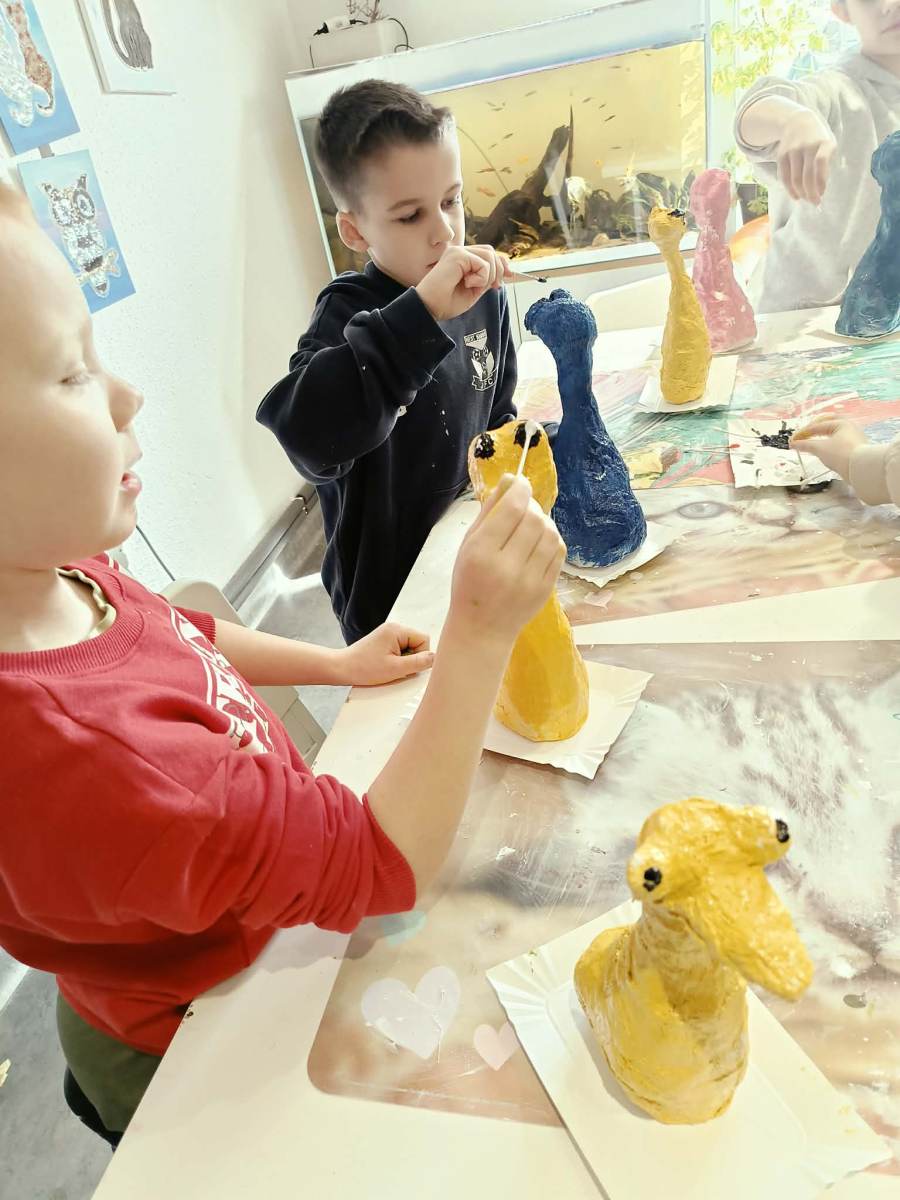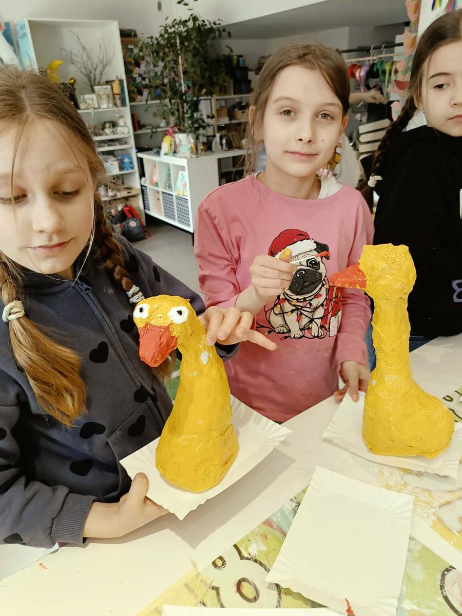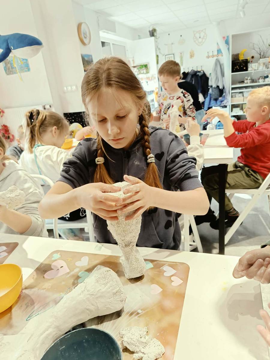Klasa 3d uczestniczyła w warsztatach plastycznych w Pracowni Artystycznej Kota Fefrota, podczas których uczniowie tworzyli kurczaki z gipsu. Zajęcia okazały się niezwykle kreatywne i pełne twórczych wyzwań – choć nie zabrakło przy tym odrobiny artystycznego bałaganu. 😊