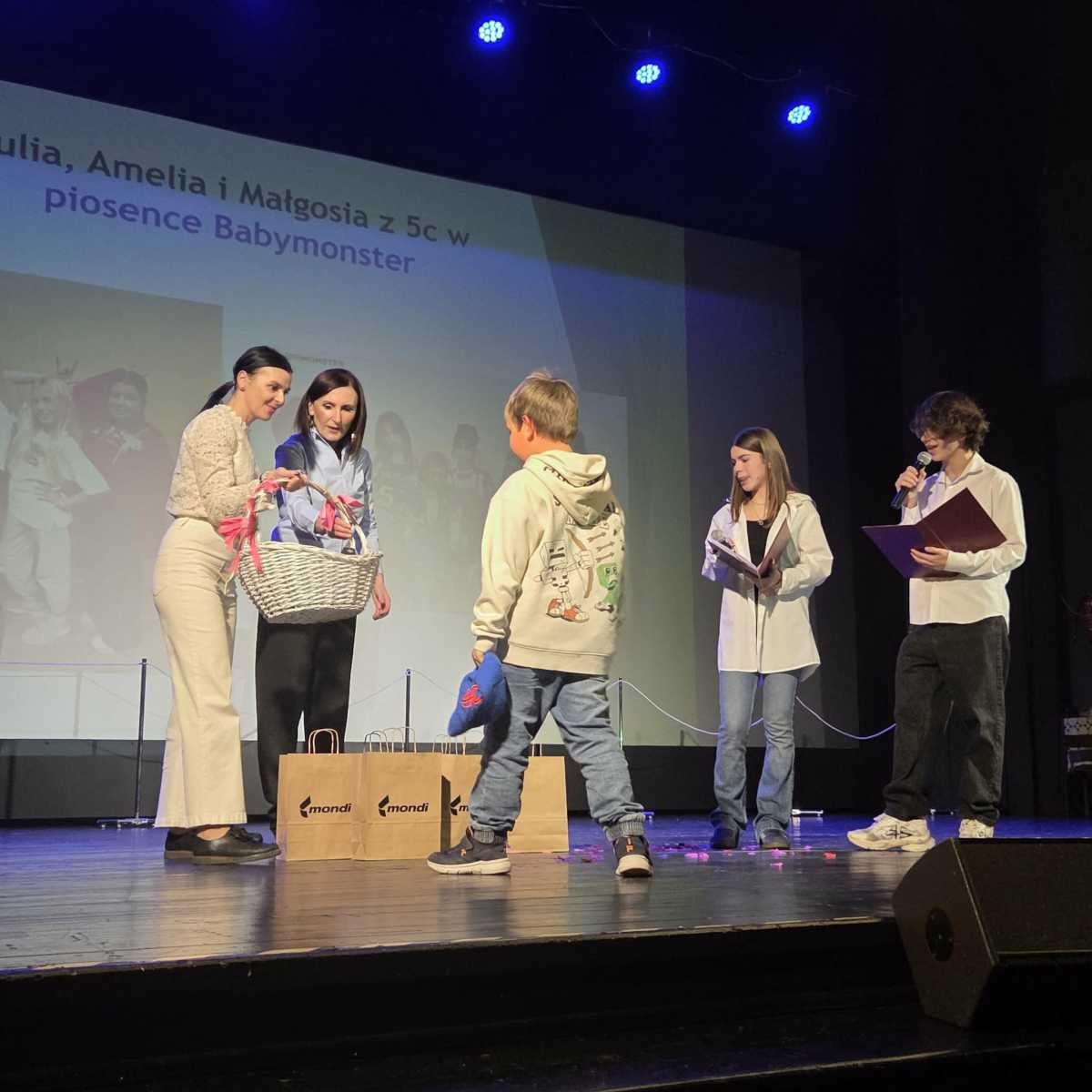 Wspaniale poradzili sobie także nasi prowadzący – Iga i Borys z klasy 8c. Z humorem, swobodą i profesjonalizmem poprowadzili całe wydarzenie, dzięki czemu wszystko przebiegło w świetnej atmosferze.