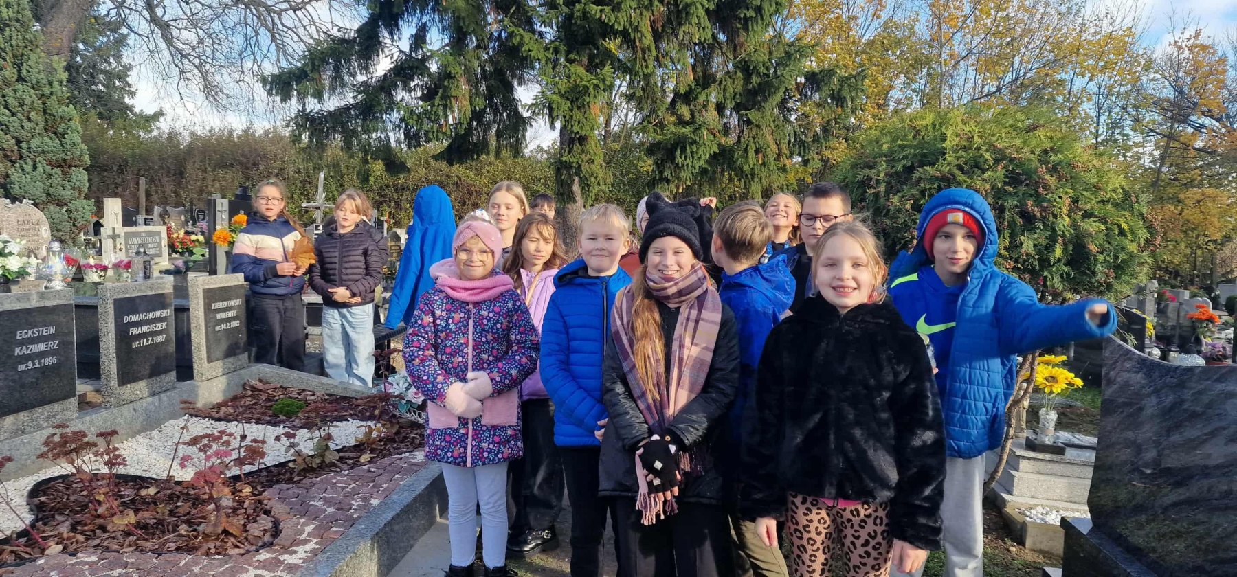 Przed Świętem Zmarłych uczniowie klasy 4D odwiedzili pobliski cmentarz. Zapalili znicze na grobach, oddając hołd zmarłym i przypominając sobie o znaczeniu pamięci oraz szacunku dla tych, którzy odeszli.