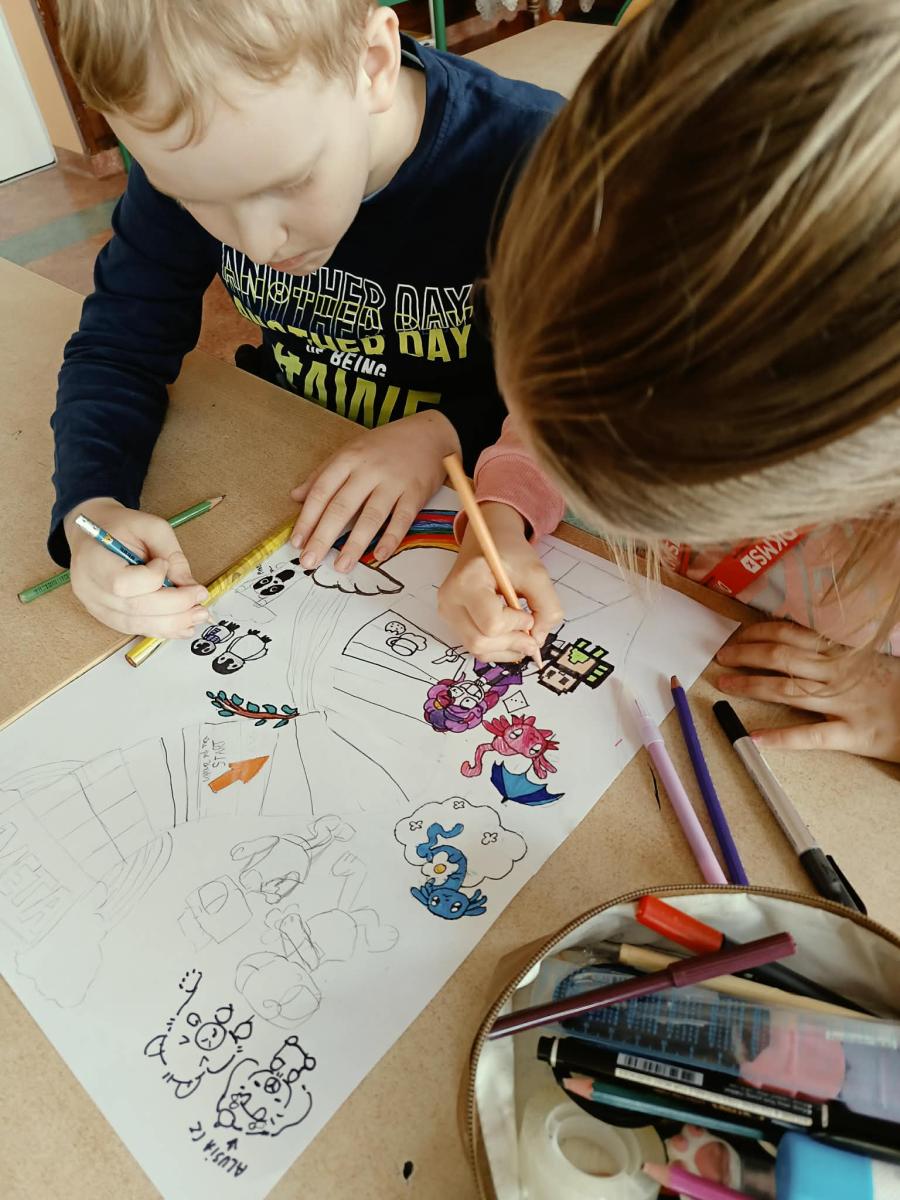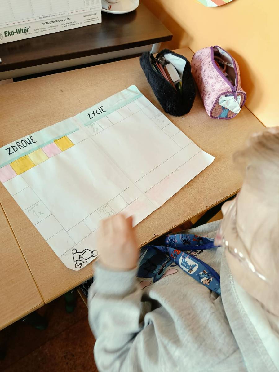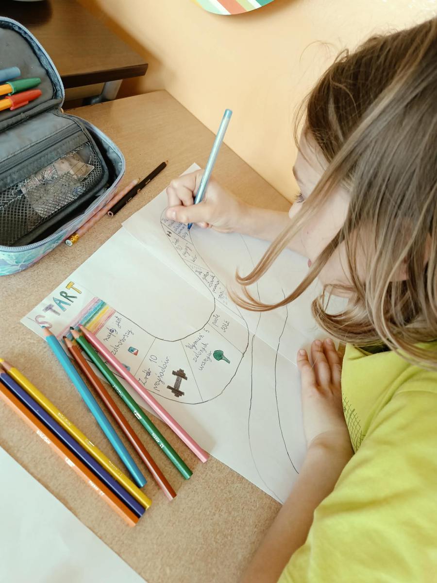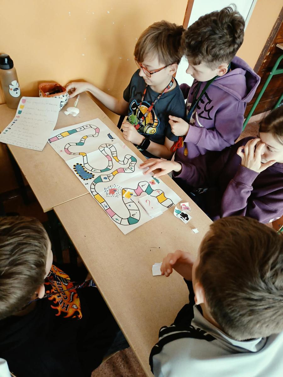Uczniowie klas 4a, 4b i 4d podczas lekcji edukacji zdrowotnej tworzyli własne gry planszowe o tematyce zdrowia. W swoich projektach poruszali zagadnienia związane ze zdrowym stylem życia, prawidłowym odżywianiem oraz aktywnością fizyczną. Praca była okazją do rozwijania kreatywności i utrwalania wiedzy w ciekawy, angażujący sposób.