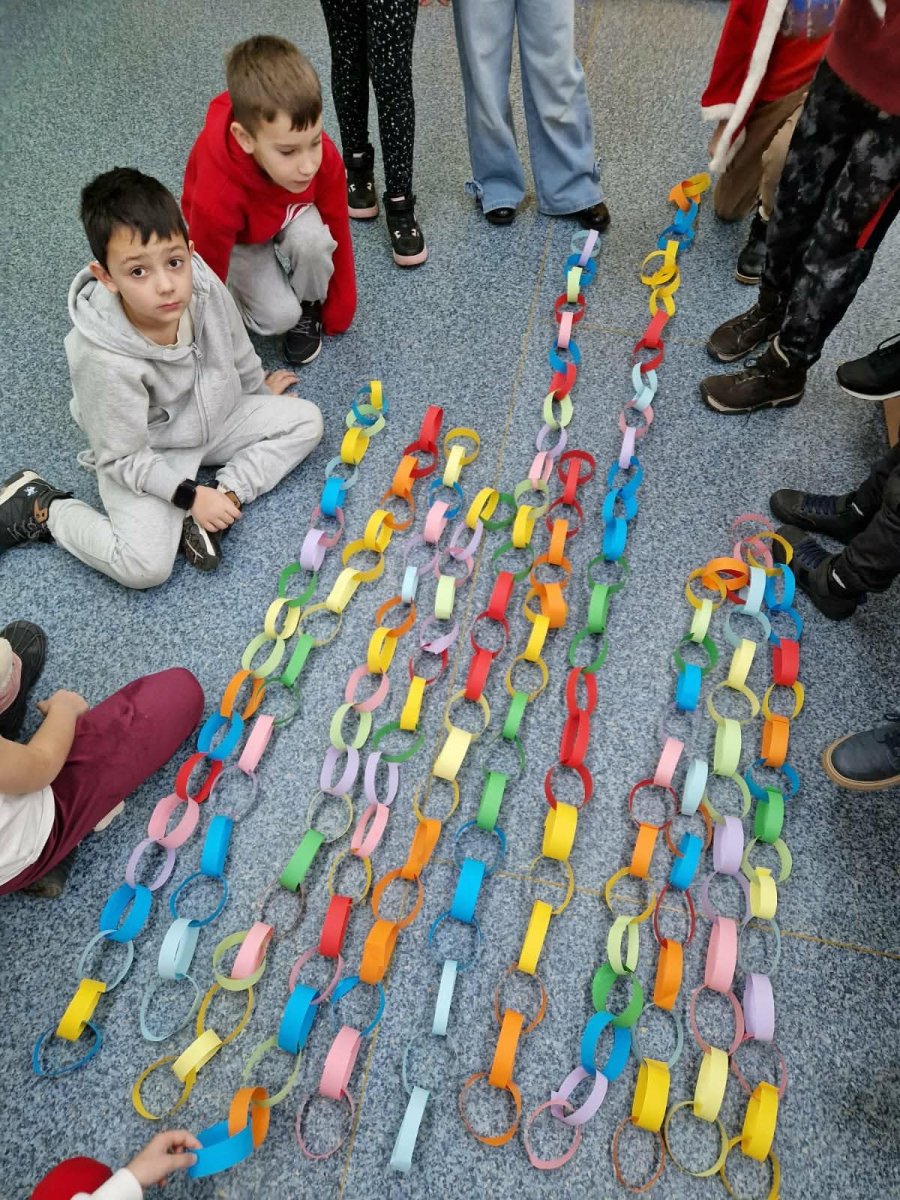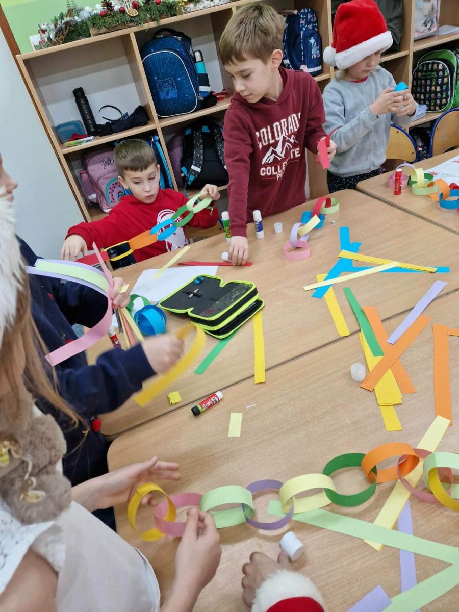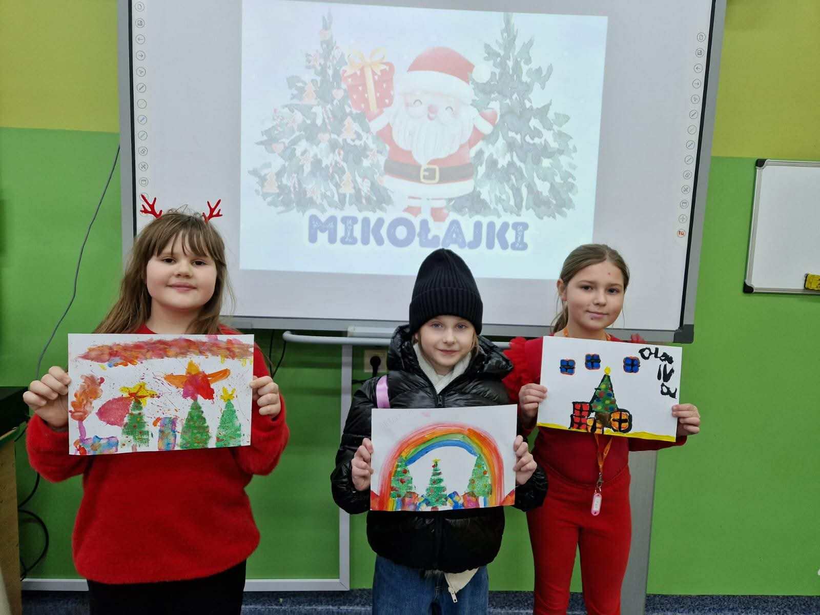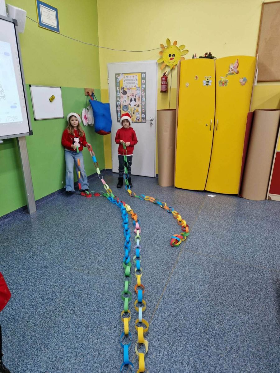 Mikołajki w naszej świetlicy upłynęły w radosnej, świątecznej atmosferze. Uczniowie wzięli udział w wielu kreatywnych i pełnych zabawy aktywnościach. Zorganizowaliśmy konkurs na najdłuższy świąteczny łańcuch, który dostarczył dzieciom mnóstwo emocji. Nie zabrakło również twórczych prac plastycznych, tym razem wykonywanych przy użyciu gąbek, co pozwoliło najmłodszym eksperymentować z kolorami i fakturami. Na zakończenie wszyscy dali się porwać rytmom świątecznej zumby, która wypełniła świetlicę energią i uśmiechem. To był dzień pełen radości, kreatywności i przedświątecznej magii!