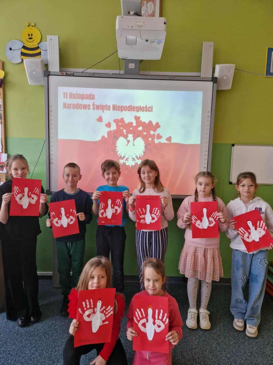 W świetlicy szkolnej przez cały tydzień przygotowywaliśmy się do Święta Niepodległości. Dzieci z ogromnym zaangażowaniem wykonywały biało-czerwone dekoracje, flagi i kotyliony, a także brały udział w zabawach, zagadkach i quizach o Polsce. Było twórczo, radośnie i bardzo patriotycznie!