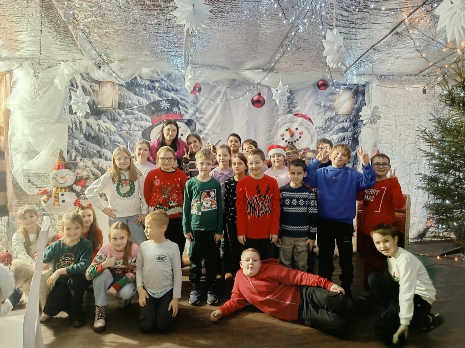 Kolejnym punktem programu były tańce oraz zabawy integracyjne, które pozwoliły uczniom miło spędzić czas w gronie koleżanek i kolegów. Dzieci miały również możliwość napisać list do Świętego Mikołaja i wrzucić go do specjalnej skrzynki. Dużym zainteresowaniem cieszyło się także karmienie kóz, wzbudzając wiele emocji i wrażeń.