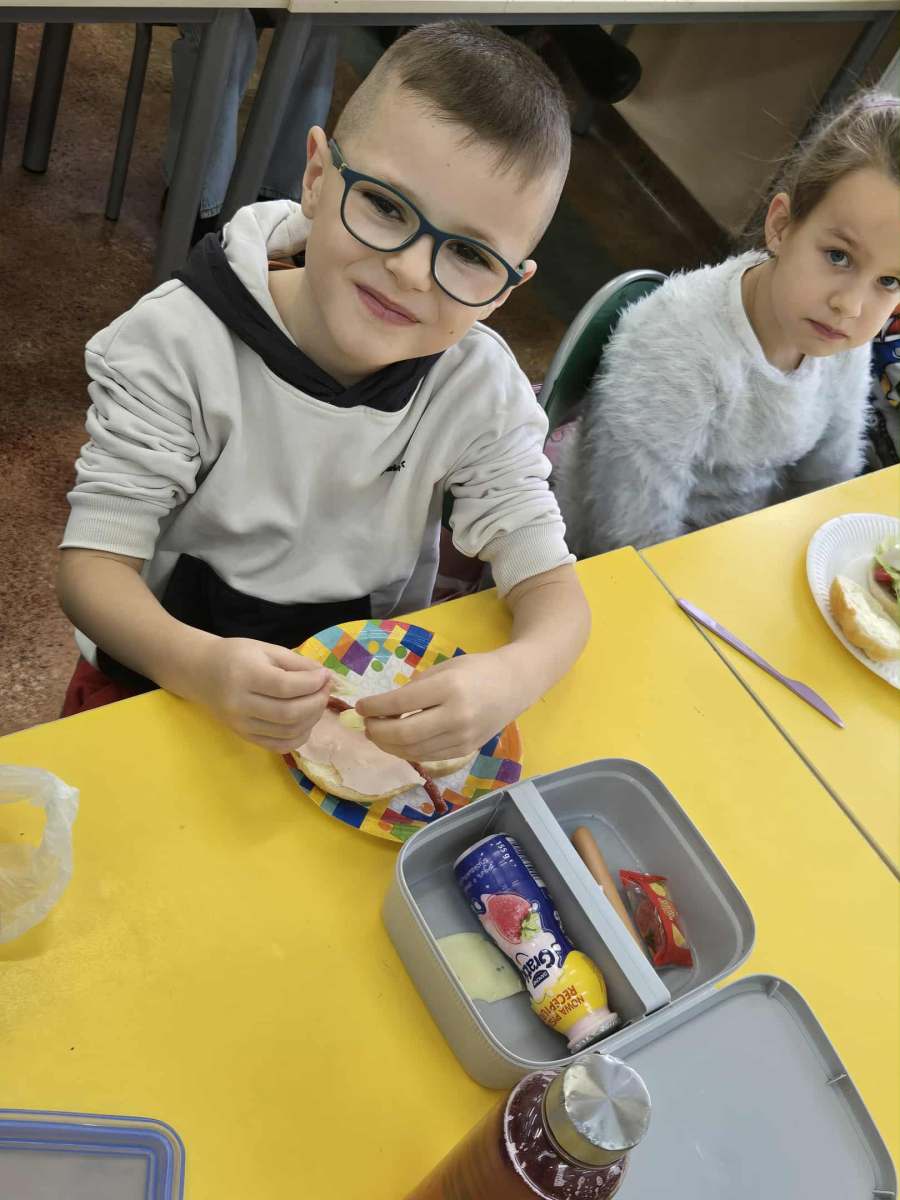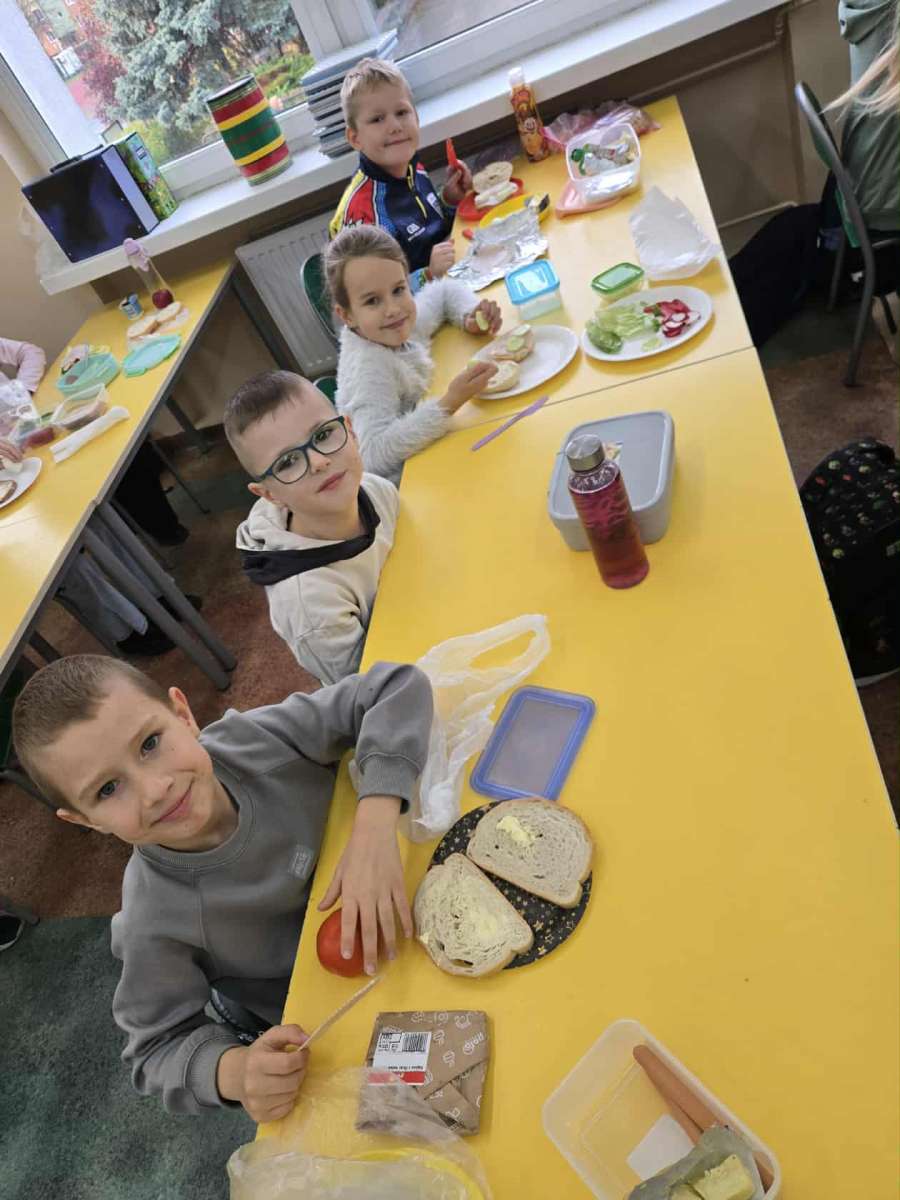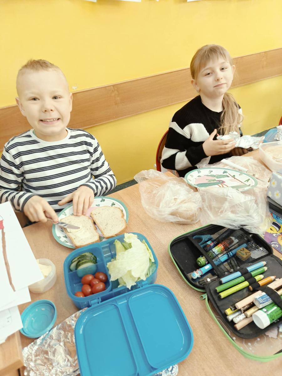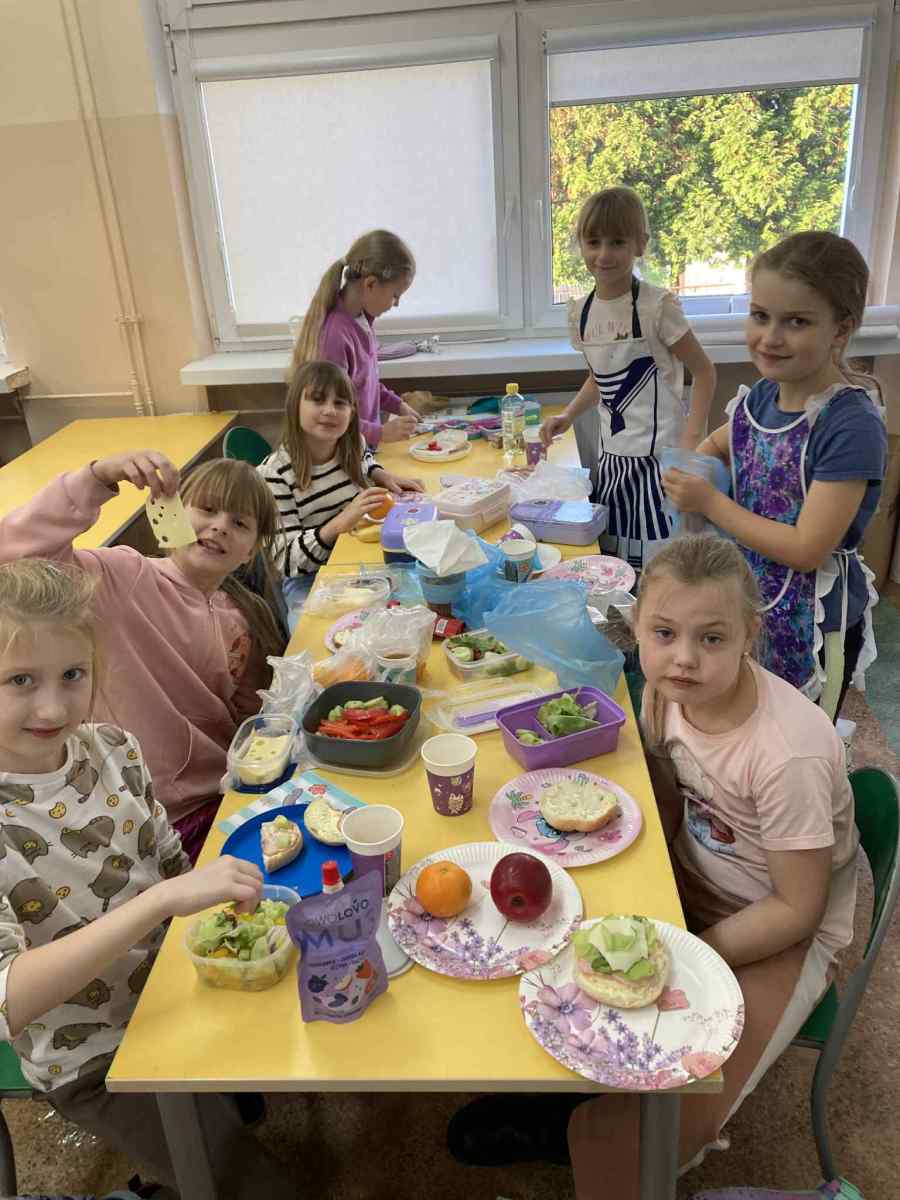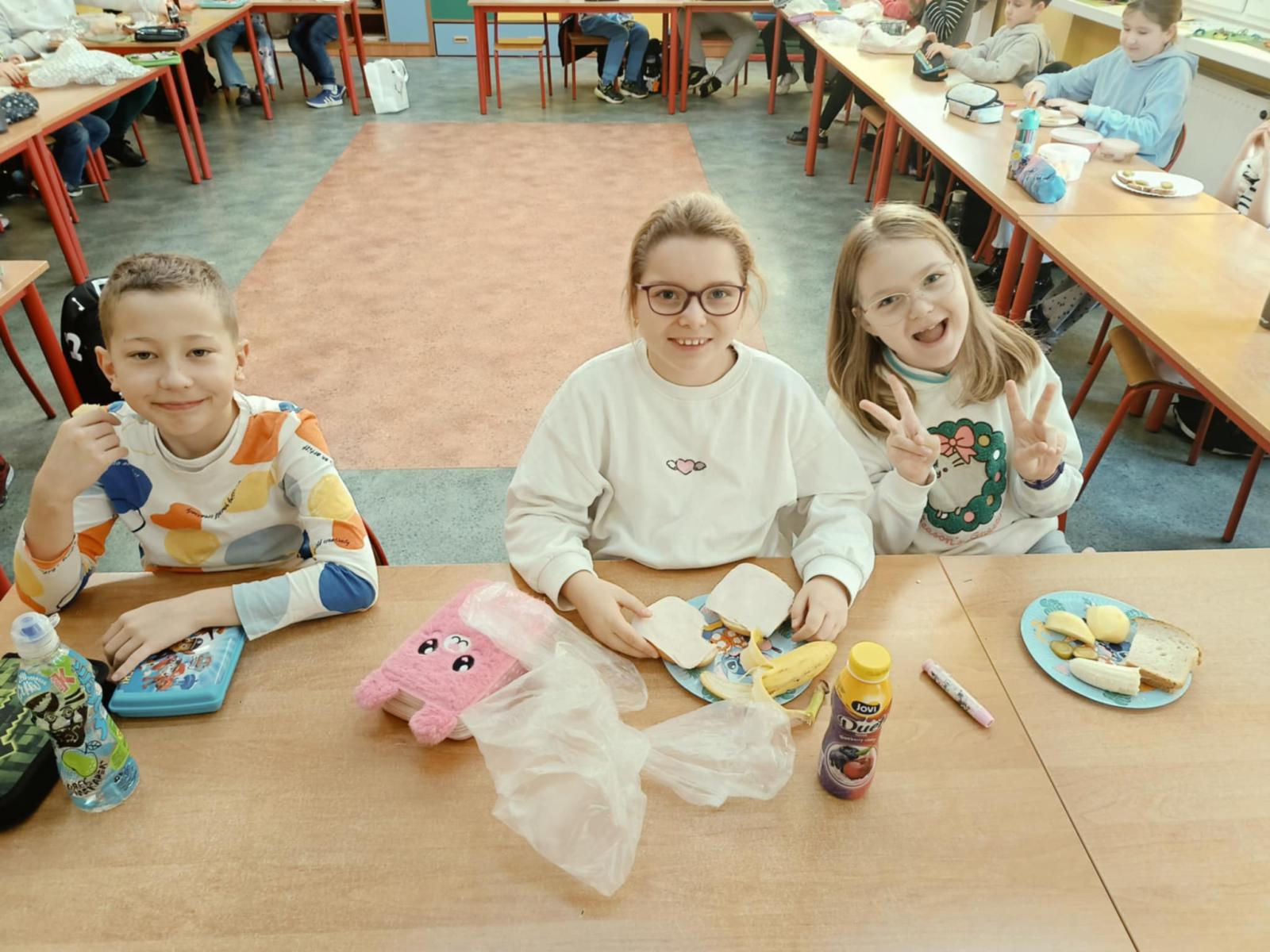 Kolejni uczniowie wzięli udział w akcji „Zdrowe śniadanie”. Dzieci poznawały zasady prawidłowego odżywiania, tworzyły kolorowe kanapki i uczyły się, jak ważne jest rozpoczynanie dnia wartościowym posiłkiem. To była smaczna lekcja zdrowych nawyków i świetna okazja do integracji całych klas.