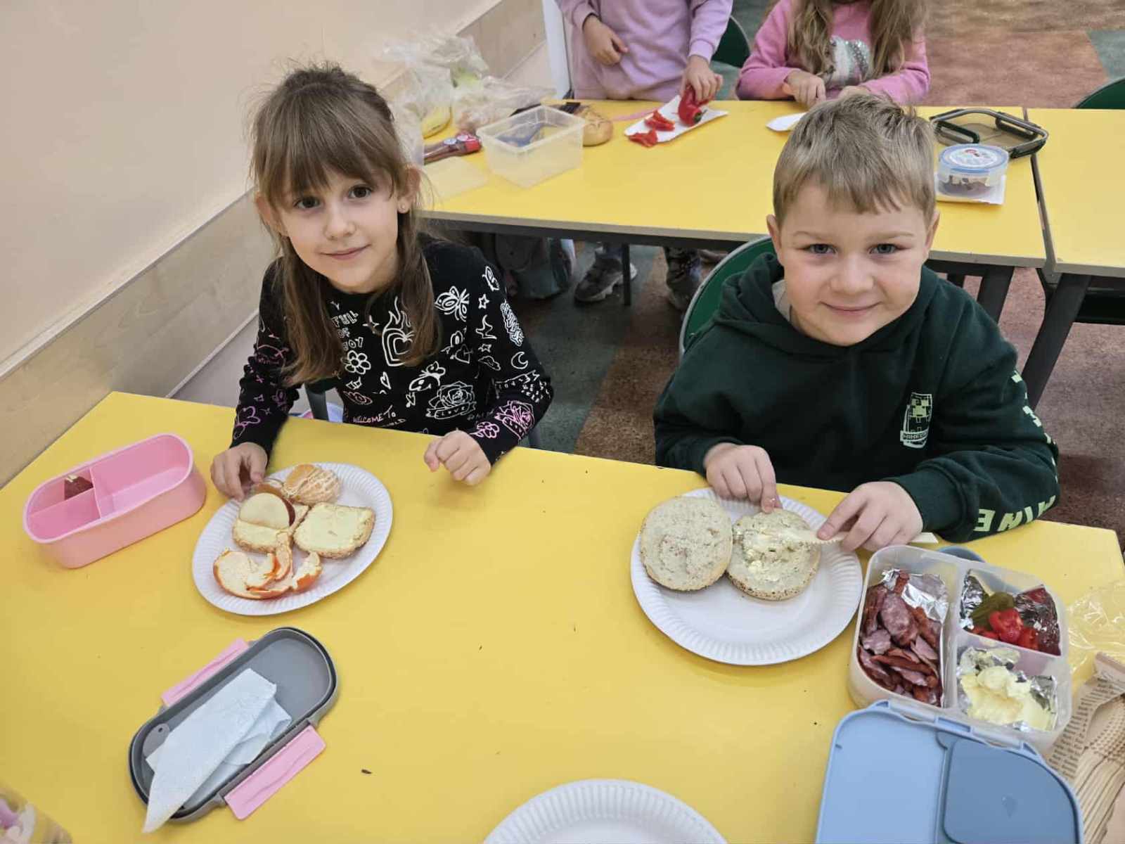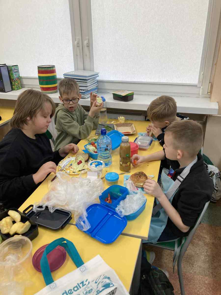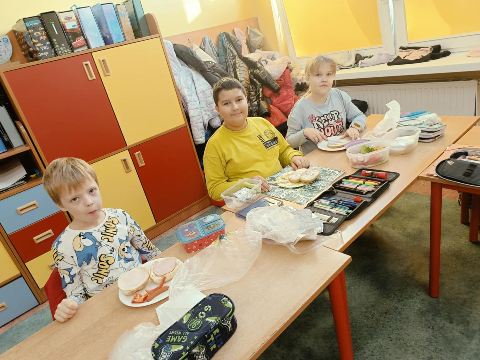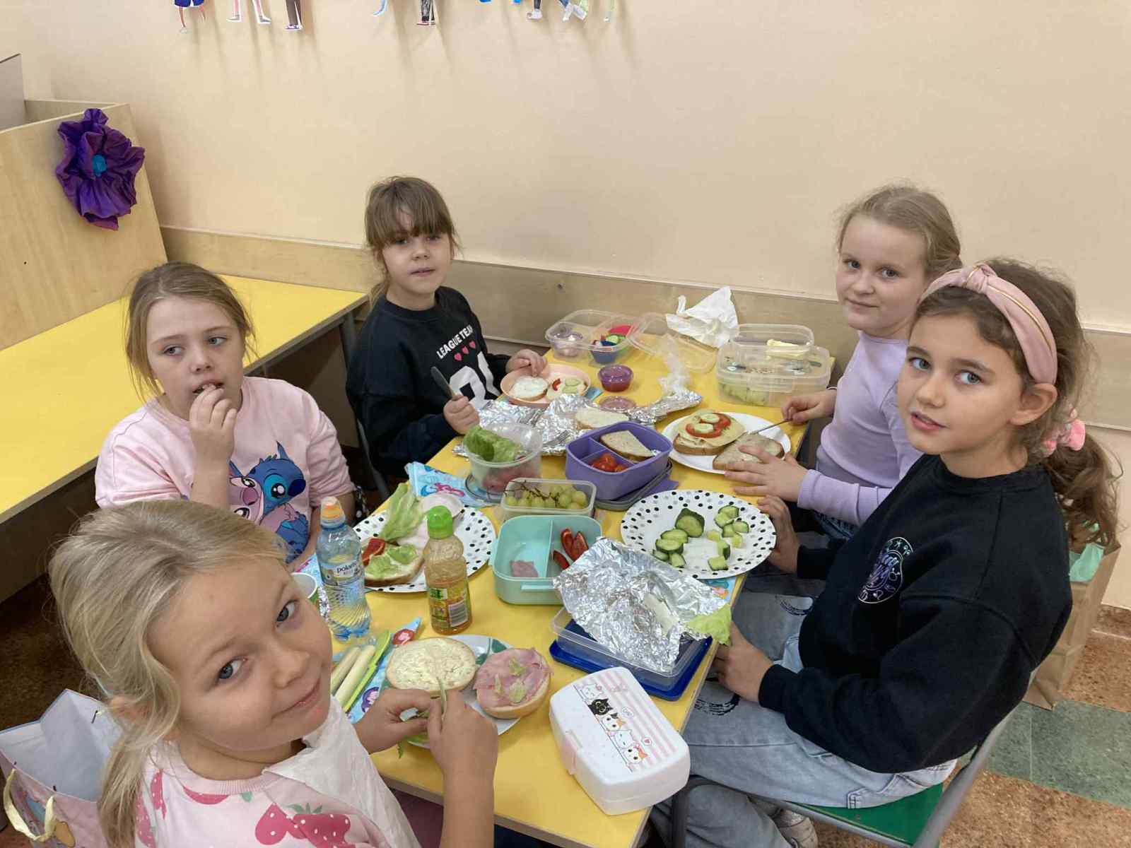 Kolejni uczniowie wzięli udział w akcji „Zdrowe śniadanie”. Dzieci poznawały zasady prawidłowego odżywiania, tworzyły kolorowe kanapki i uczyły się, jak ważne jest rozpoczynanie dnia wartościowym posiłkiem. To była smaczna lekcja zdrowych nawyków i świetna okazja do integracji całych klas.