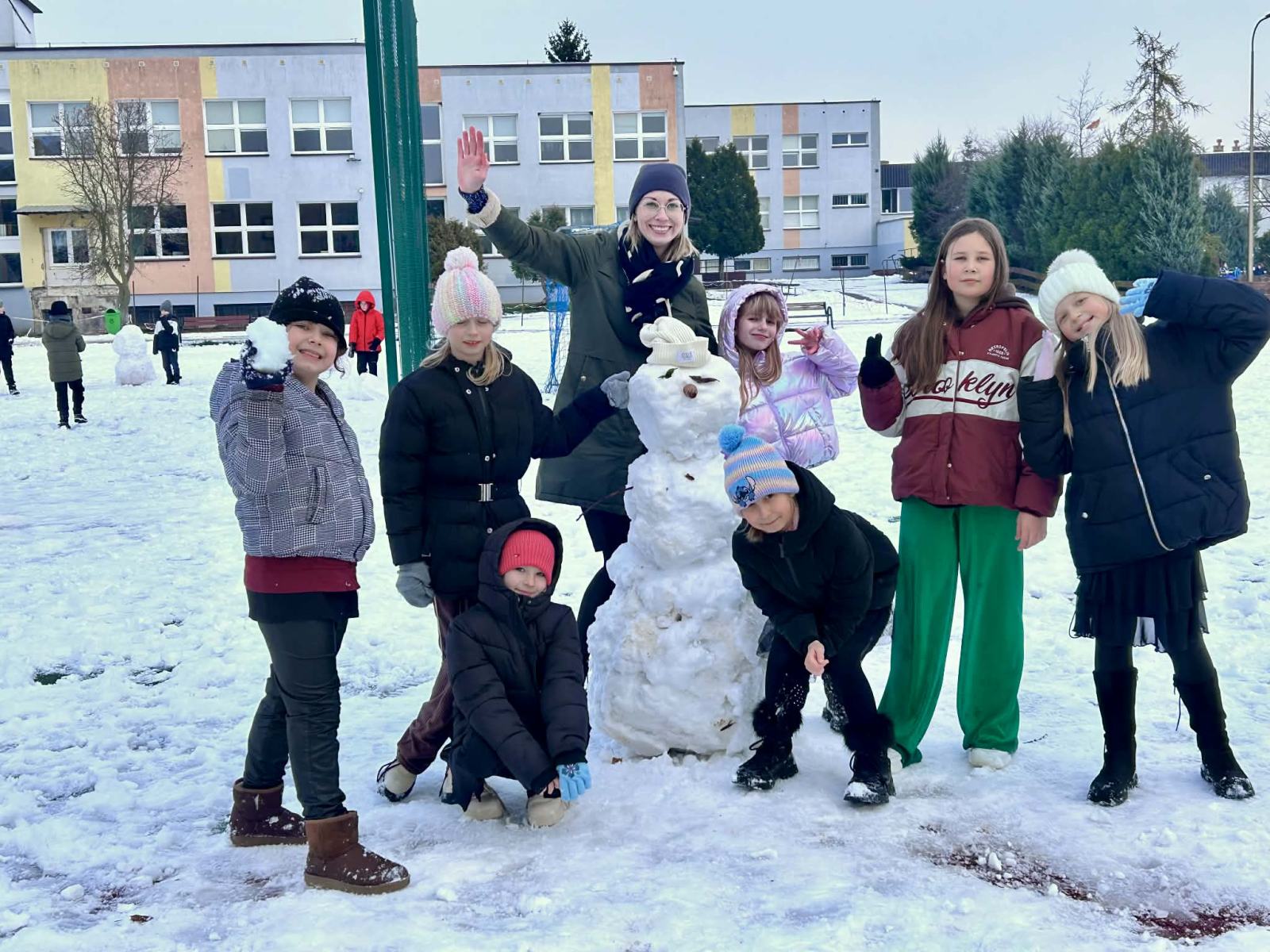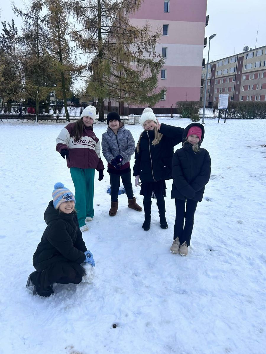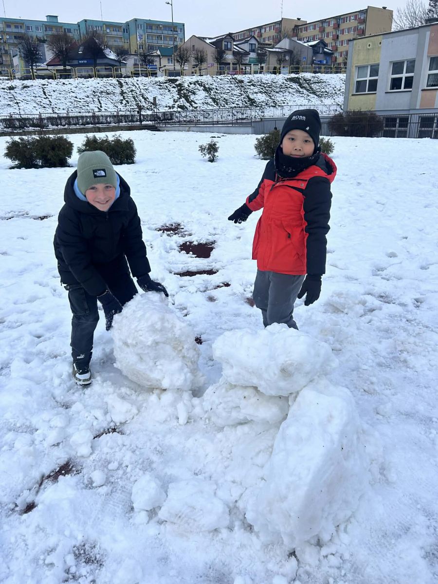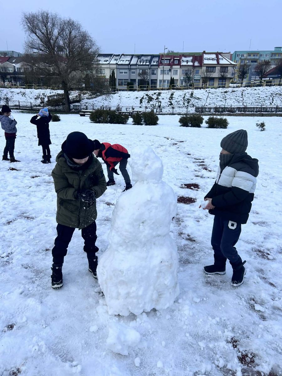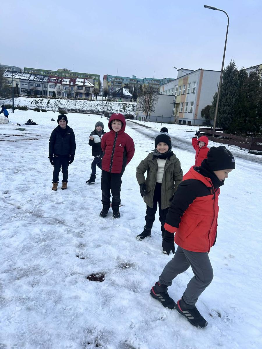 Wraz z pierwszym śniegiem na naszym boisku zrobiło się naprawdę zimowo! Uczniowie z radością lepili bałwany, urządzali bitwy na śnieżki i zostawiali na białym puchu swoje pierwsze ślady tej zimy. To była świetna okazja do wspólnej zabawy na świeżym powietrzu i czerpania radości z zimowej aury.